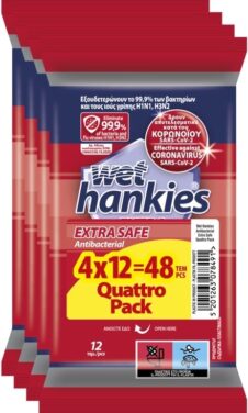 WET HANKIES ΥΓΡΑ ΜΑΝΤΗΛΑΚΙΑ ANTIBACTERIAL 4×12ΤΕΜ EXTRA SAFE