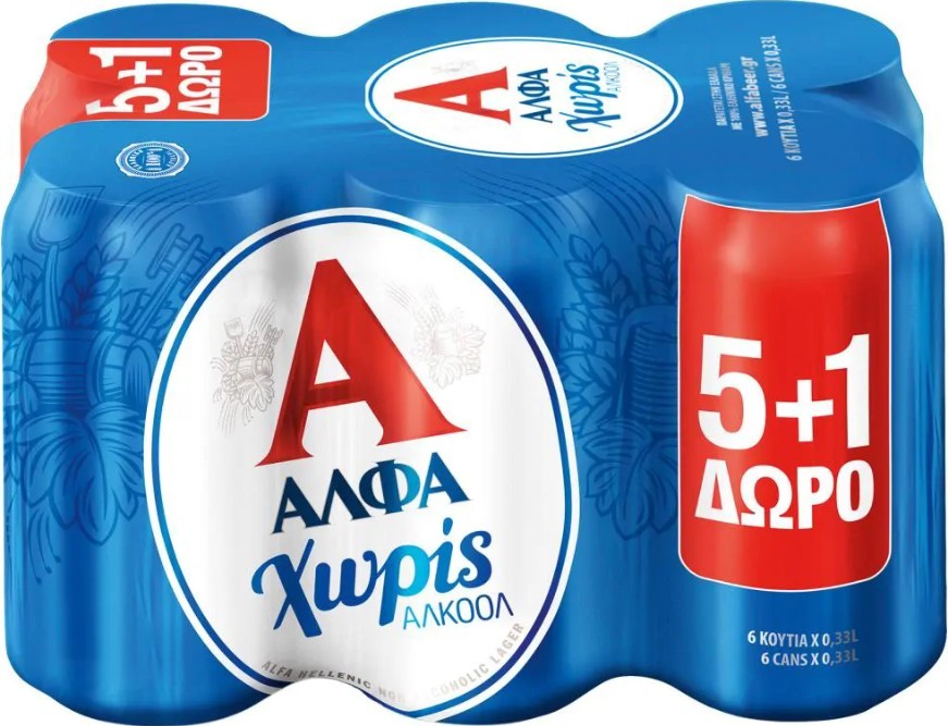 ΑΛΦΑ ΚΟΥΤΙ ΜΠΥΡΑ (5+1 ΔΩΡΟ Χ 330ML) x 4 ΧΩΡΙΣ ΑΛΚΟΟΛ Κιβώτια(1-2mm)