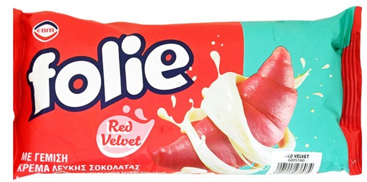 FOLIE ΚΡΟΥΑΣΑΝ 100ΓΡ RED VELVET ΜΕ ΚΡΕΜΑ ΛΕΥΚΗΣ ΣΟΚΟΛΑΤΑΣ 20ΑΔΑ
