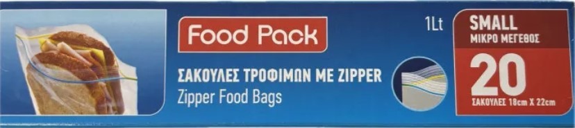 FOOD PACK ΣΑΚΟΥΛΕΣ ΤΡΟΦΙΜΩΝ 1L 18X22CM 20ΤΜΧ ΜΕ ZIPPER 50ΑΔΑ