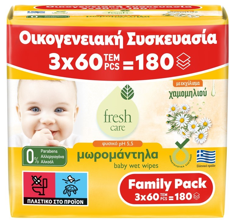FRESH CARE ΜΩΡΟΜΑΝΤΗΛΑ 3Χ60ΤΕΜ ΧΑΜΟΜΗΛΙ ΟΙΚΟΓΕΝΕΙΑΚΗ ΣΥΣΚΕΥΑΣΙΑ