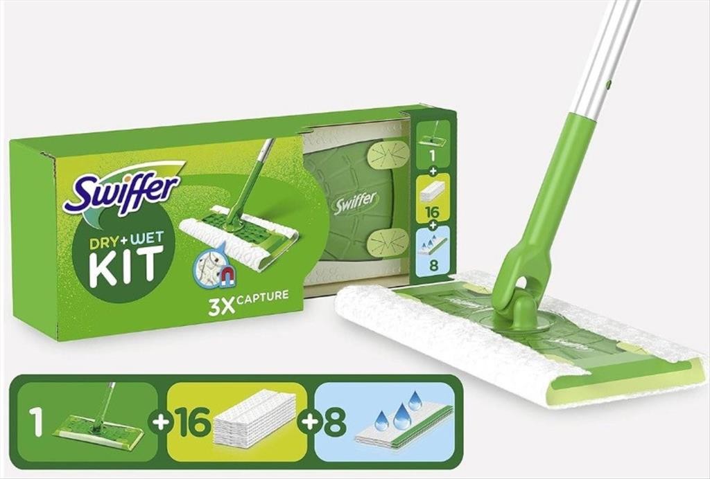 SWIFFER KIT ΣΚΟΥΠΙΣΜΑΤΟΣ ΣΚΟΥΠΑ ΜΕ 16 ΣΤΕΓΝΑ & 8 ΥΓΡΑ ΑΝΤΑΛΛΑΚΤΙΚΑ ΠΑΝΑΚΙΑ Κιβώτια(1-2mm)