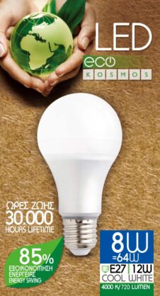 KOSMOS ΛΑΜΠΤΗΡΑΣ LED ΓΛΟΜΠΟΣ 8W E27 COOL WHITE 4000K 720LUMEN