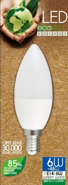 KOSMOS ΛΑΜΠΤΗΡΑΣ LED ΚΕΡΙ 6W E14 WARM WHITE 3000K 510LUMEN