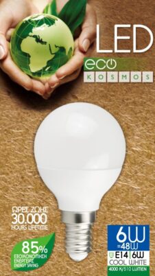 KOSMOS ΛΑΜΠΤΗΡΑΣ LED ΓΛΟΜΠΑΚΙ 6W E14 COOL WHITE 4000K 510LUMEN